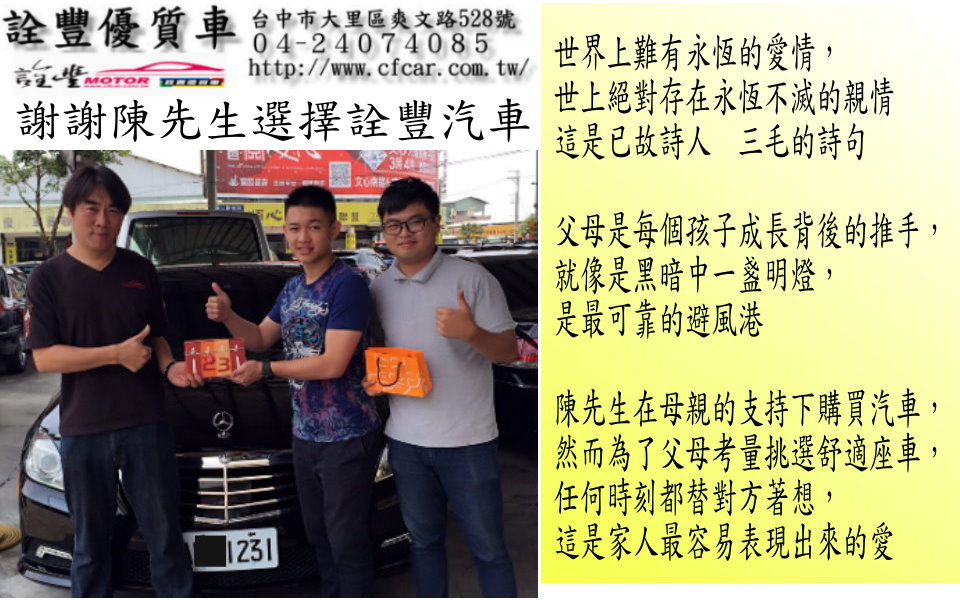 謝謝陳先生選擇詮豐汽車